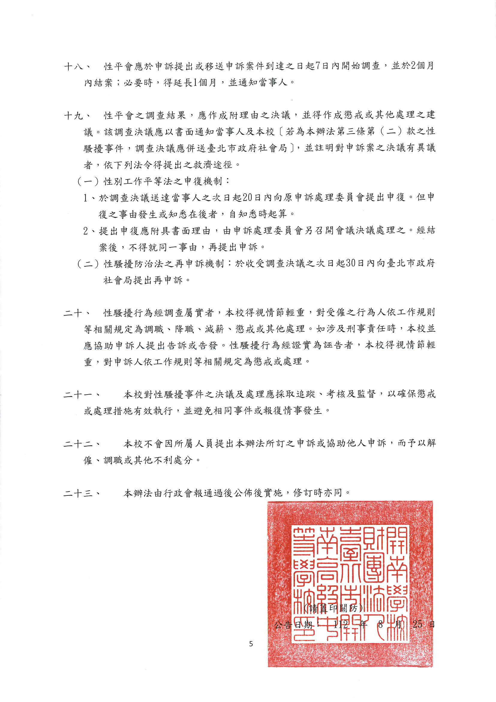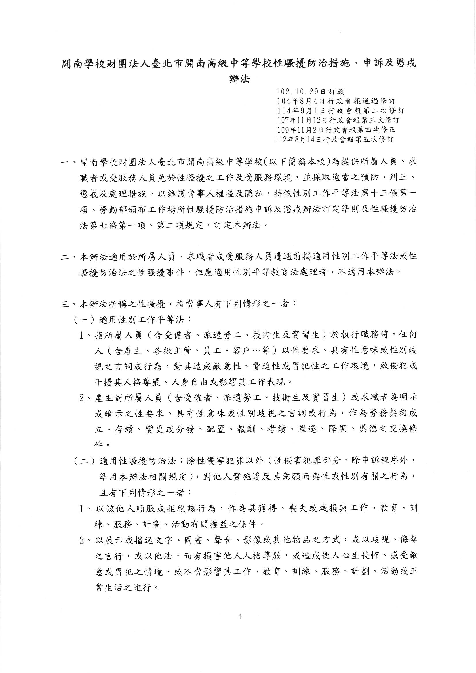 5.開南學校財團法人臺北市開南高級中等學校性騷擾防治措施及申訴懲處辦法